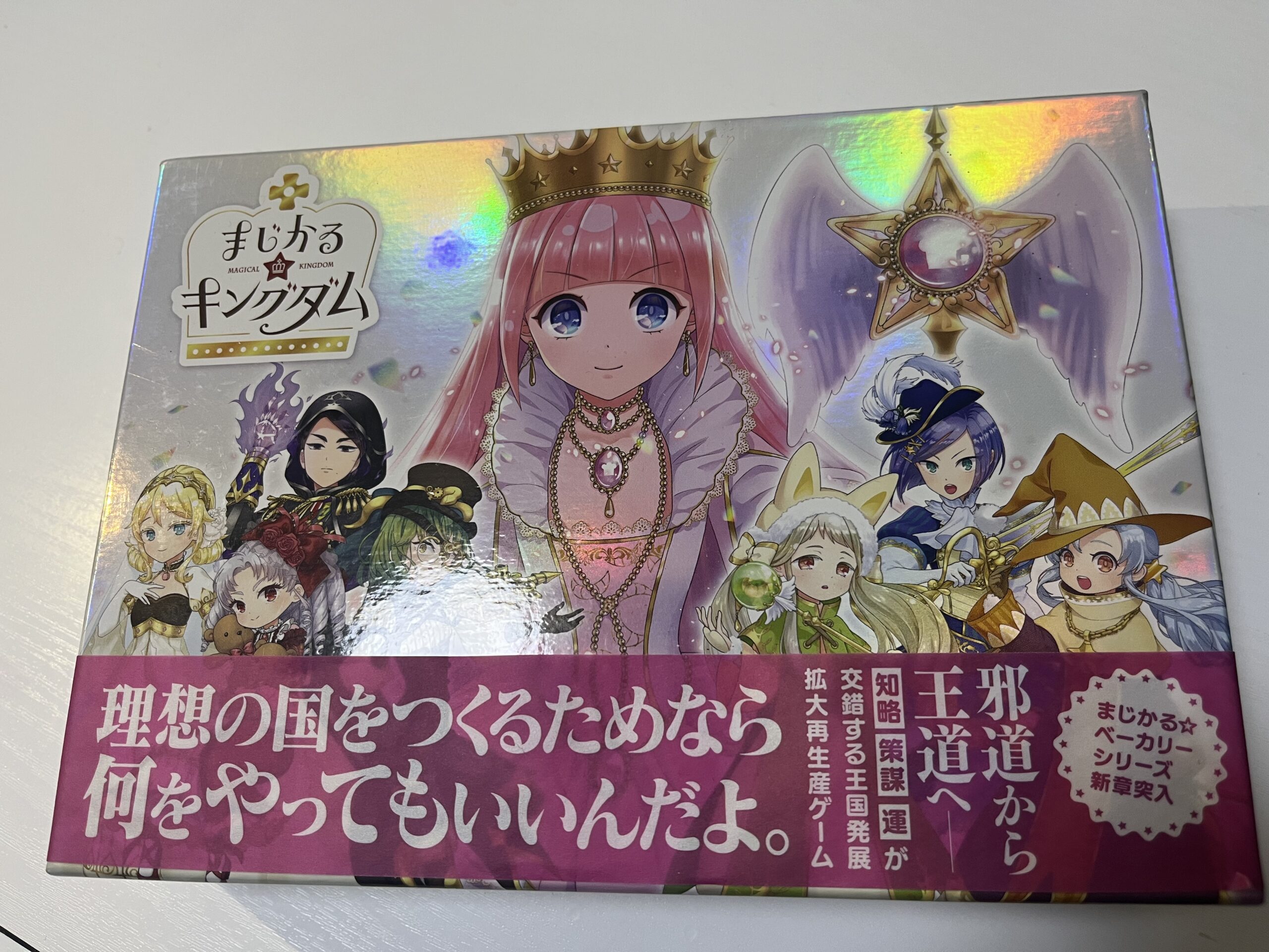 「まじかる☆キングダム」は、資源を増やしながらカードを設置し、勝利点を競う拡大再生産系ゲームです。ポップで可愛い世界観ながら、戦略性もしっかりあります。